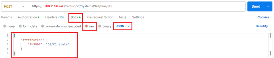 POST https://BMC_IP_Address/redfish/v1/Systems/Self/Bios/SD