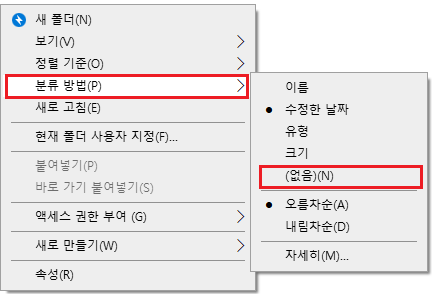 W10 - 다운로드 폴더 그룹 보기 해제