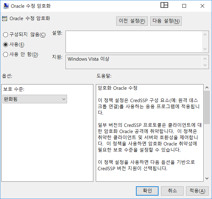 참고, Oracle 암호화 관련 항목이 Group Policy 목록에 보이지 않으면, 관련 OS 패치가 없어서 일 수 있다 ...