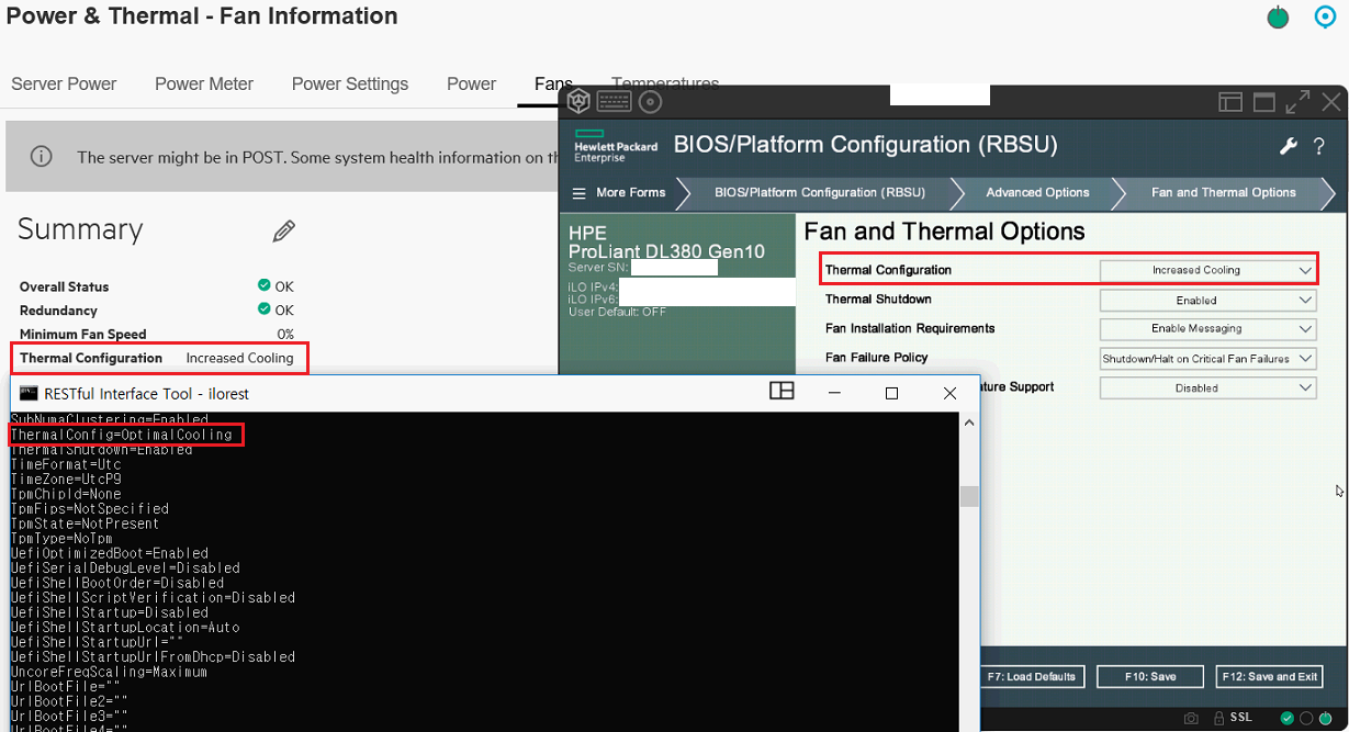 Gen10 시스템의 경우, iLO fw 2.30 부터, Online에서 냉각 설정을 변경할 수 있다.