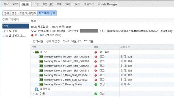 iLO5/fw 2.30 적용 시, VMware OE에서 Memory 상태 Alarm 발생