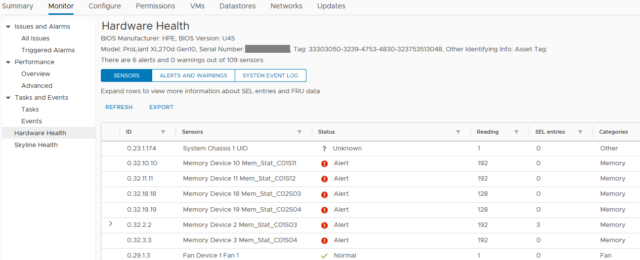 Advisory: VMware - The Memory Sensor Status Reported in the vSphere Web Client Is Not Accurate For HPE ProLiant Gen10 and Gen10 Plus Servers Running VMware ESXi 6.5/6.7/7.0 With HPE Integrated Lights-Out 5 (iLO 5) Firmware Version 2.30