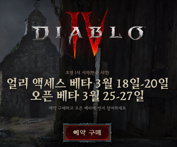 드디어 D4 얼리 액세스(맛보기?) 베타가 접근된다~~