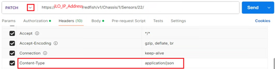 PATCH https://iLO_IP_Address/redfish/v1/Chassis/1/Sensors/22/